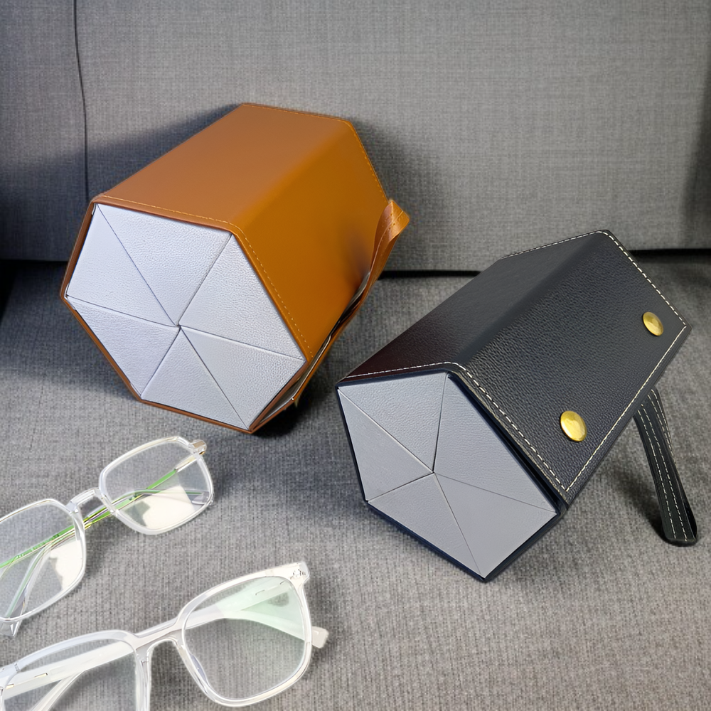 Elegáns bőr napszemüvegtok ötszögű, kreatív szemüvegtartó